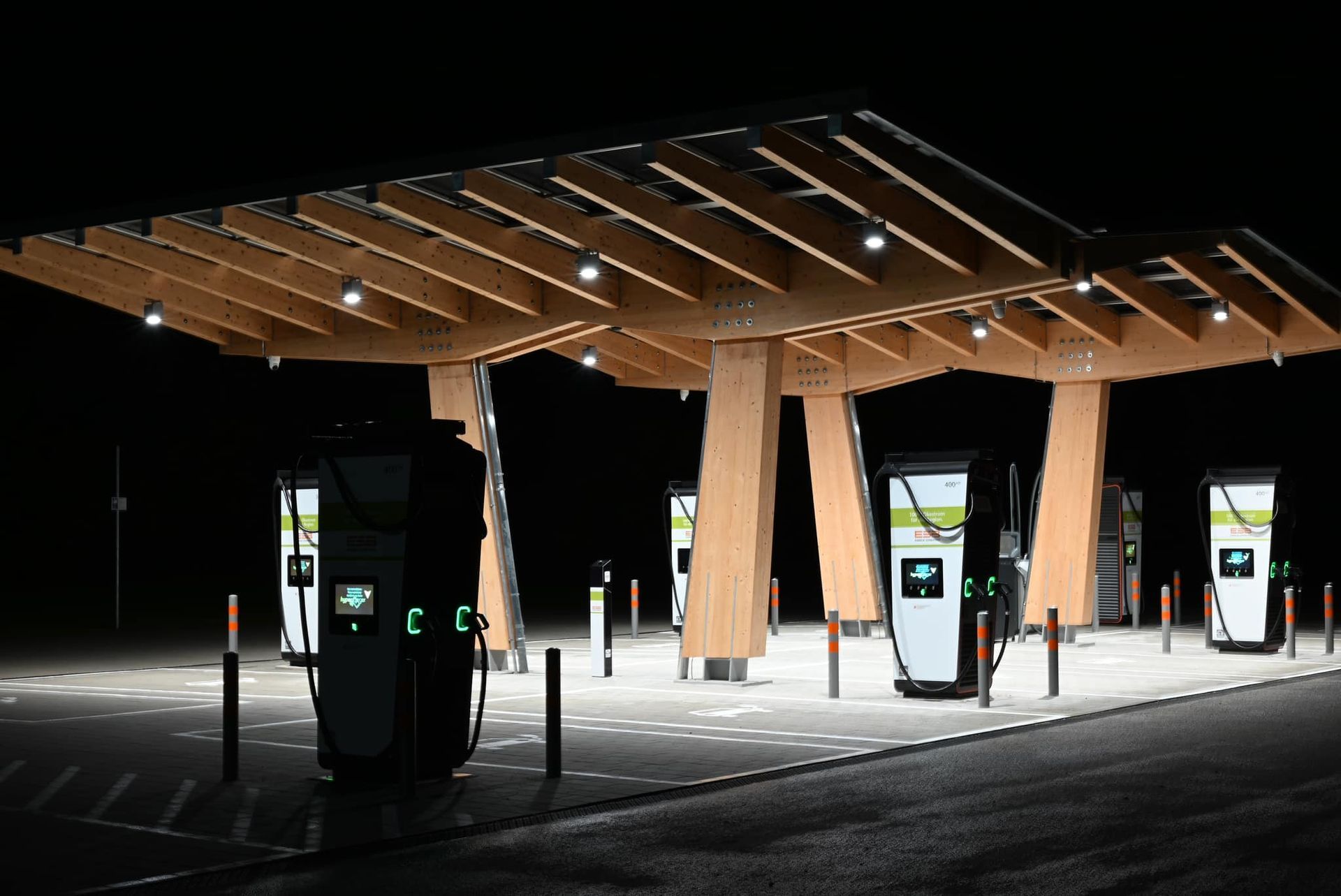 Im Pentlinger Gewerbegebiet Ammerholz steht ab sofort ein modernes Schnellladenetz mit 12 Säulen und bis zu 400 kW Leistung für Elektroautos zur Verfügung. Ein Teil des benötigten Stroms wird durch eine vor Ort installierte Photovoltaikanlage erzeugt.