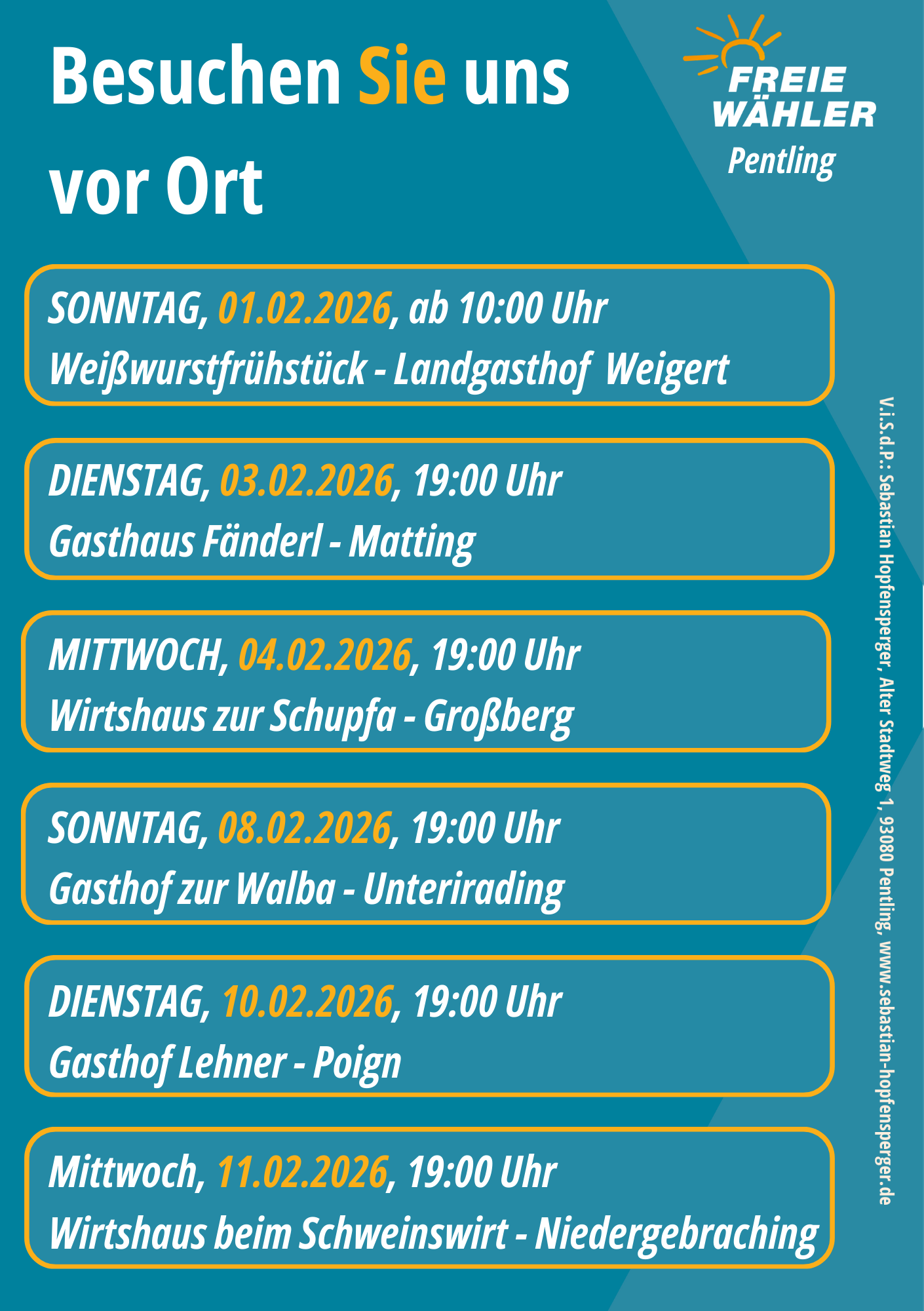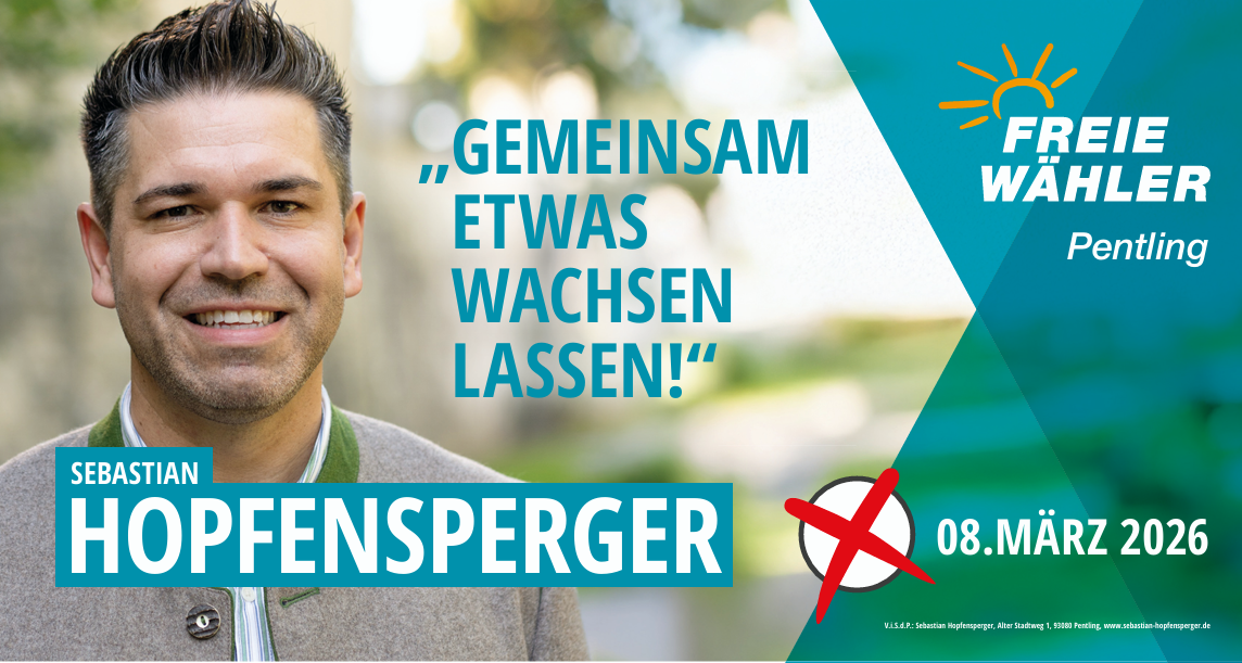 Diesen Weg möchte ich fortsetzen und würde mich daher freuen, als Bürgermeister von Pentling auf Ihr Vertrauen und Ihre Unterstützung zählen zu dürfen.
